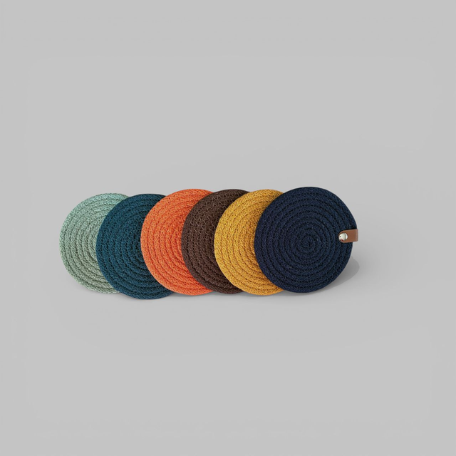 Assortiment de 6 dessous de verre réalisés en corde de coton tressée. Cadeau de pendaison de crémaillère, de remerciement. Art de la table made in Boulogne Billancourt.