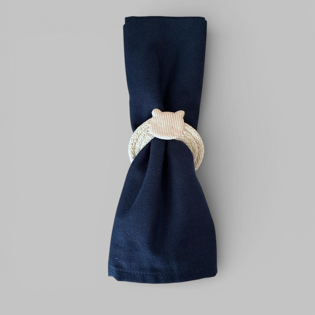 Assortiment de 4 ronds de serviette réalisés en corde de coton tressée avec une tête de chat. Cadeau de pendaison de crémaillère, de remerciement. Art de la table made in Boulogne Billancourt.